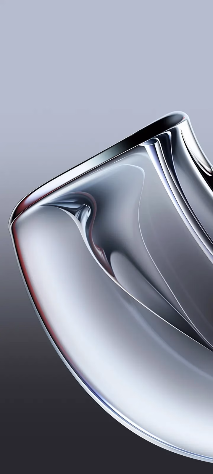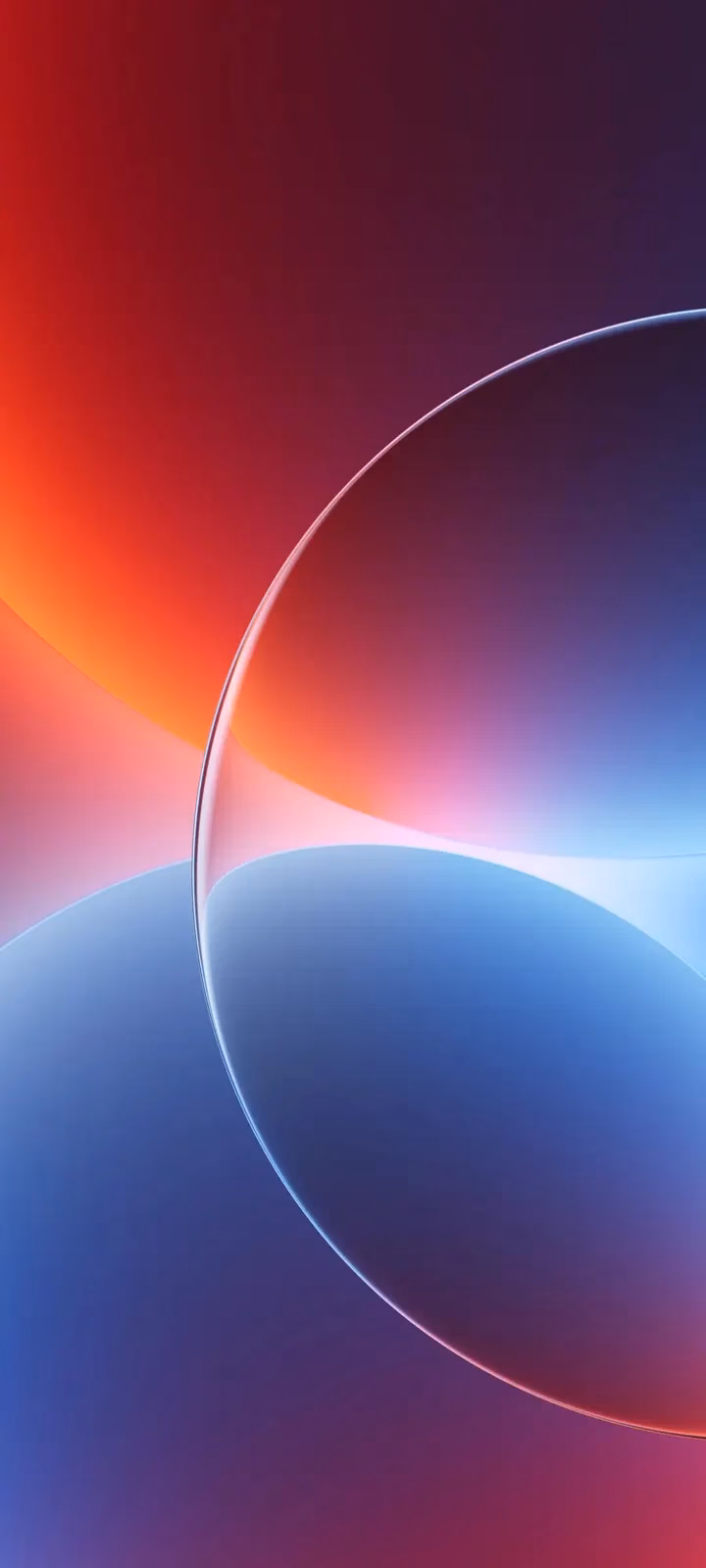 Some wallpapers present glossy, fluid metallic shapes with reflective edges, blending realism with abstraction. The reflections and highlights offer a glass-like effect, aligning with the OxygenOS “Liquid Glass” visual overhaul. Curved glass overlays with red, purple, and blue hues, blending smooth gradients with a central glass arc. This one highlights the new expressive and “liquid” design direction.