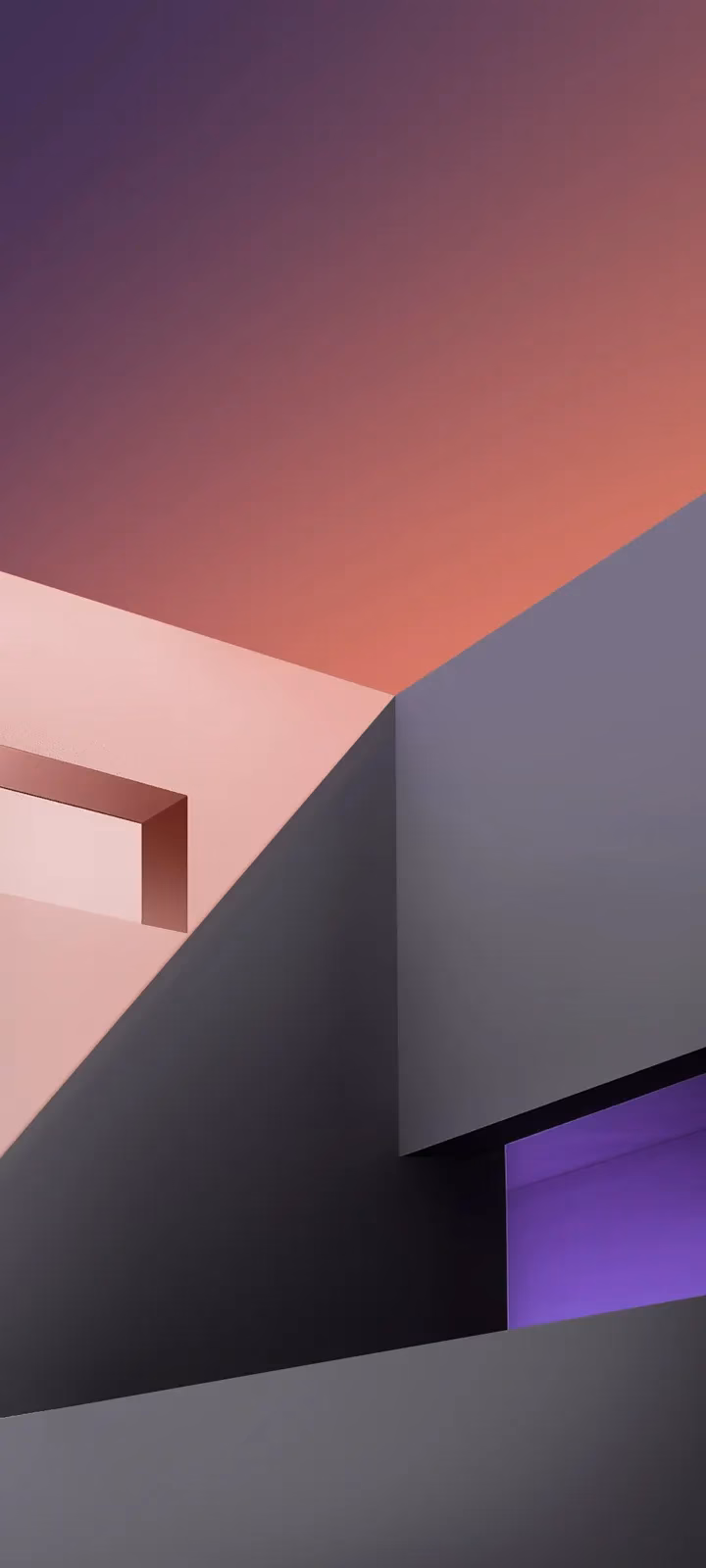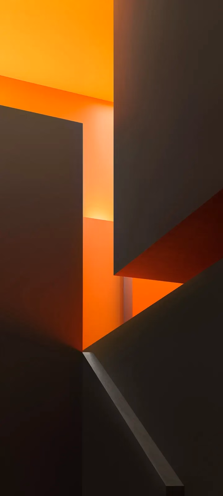 Most of the wallpapers feature angular geometric forms with deep blacks and striking gradients. It utilizes sharp intersections and varying depth to create a strong, abstract, and architectural vibe. The visual layering effects create a calming, minimalistic look.